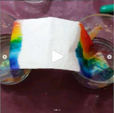 Y por último os proponemos la realización de este sencillo experimento para el que sólo necesitáis papel de cocina y rotuladores. Además de dos vasos con un poco de agua. Ya veréis como los colores se unen y... no os cuento el final para no romper la sorpresa.