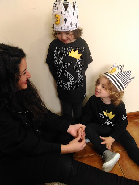 Después de tener claro como quería las coronas lo siguiente era escoger su look y para esto tenía clarísimo que quería las súper camisetas de @pequenomolon y este modelo en negro y personalizadas en el brazo nos encanta.
