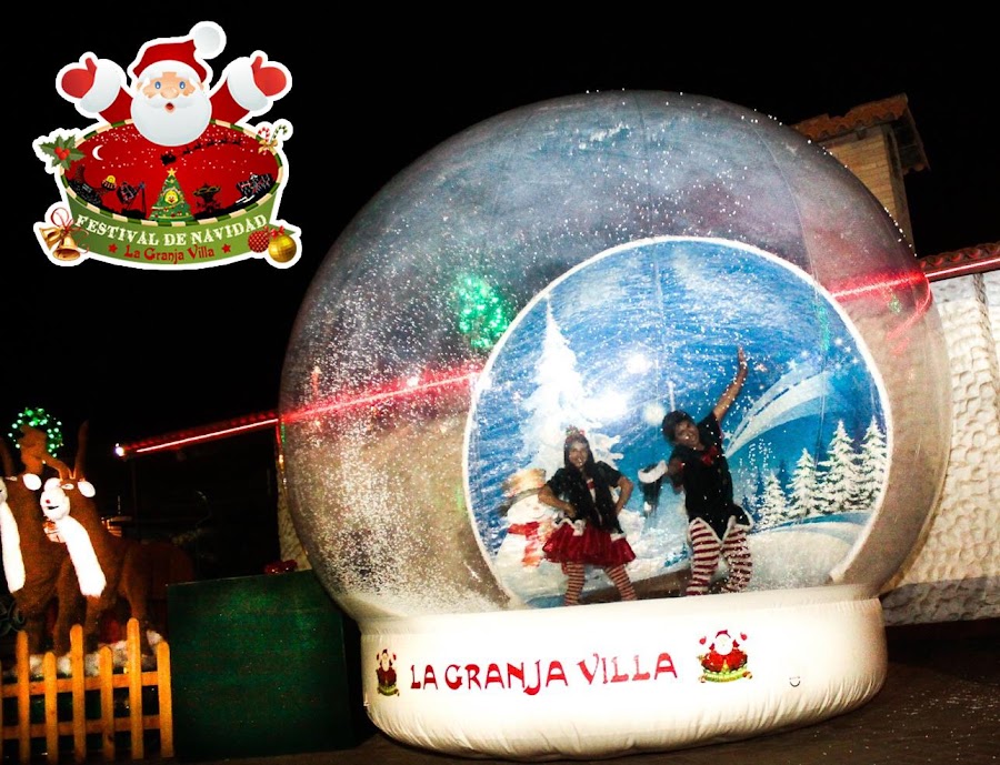 El Primer Festival Nocturno de Navidad con atracciones, área de fotos y juegos mecánicos en La Granja Villa de Chorrillos. Podrás ver la increíble burbuja gigante y observarás a los duendes jugar en ella.