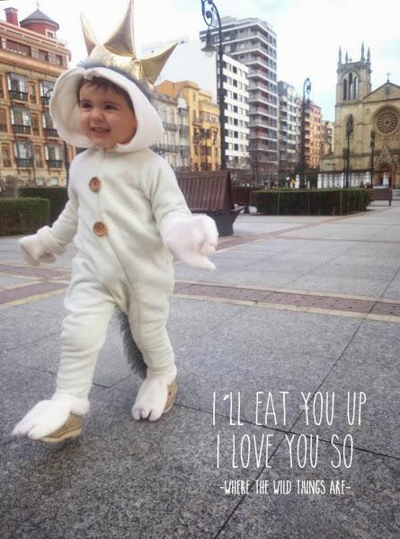 Este año decidimos disfrazar a Sira de Max, el niño protagonista del libro "Donde Viven Los Monstruos" (Where the Wild Things Are) de Maurice Sendak. Yo soy fan de esa historia desde que tengo memoria; es uno de mis libros de referencia desde que soy enana (y el que por ejemplo inspiró toda la filosofía que existe tras To The Wild). Ahora además de leerlo juntas, también vemos a menudo la película, y nos sabemos un montón de aullidos y gritos feroces porque dentro de cada una de nosotras hay todo un rey de los monstruos.