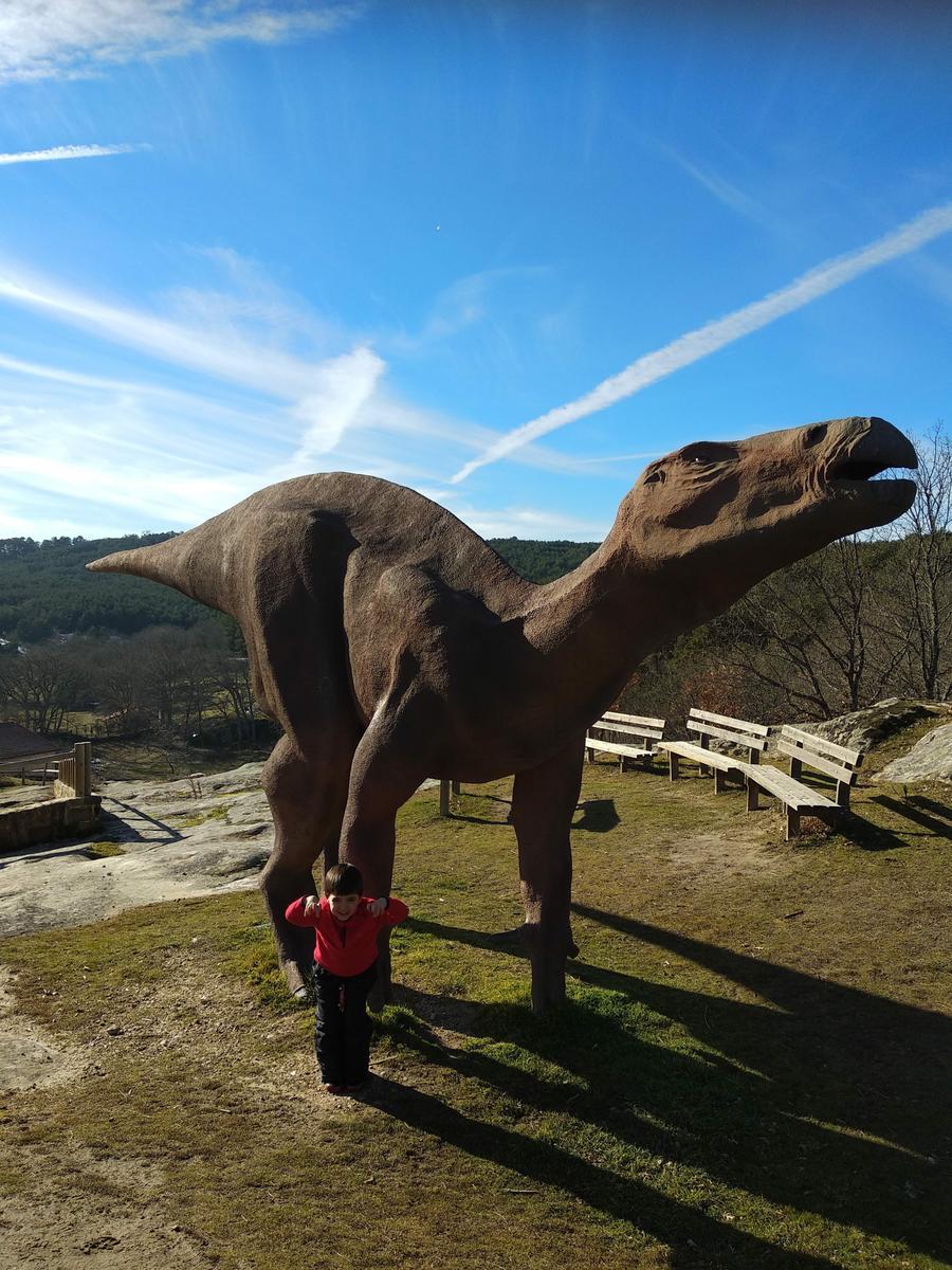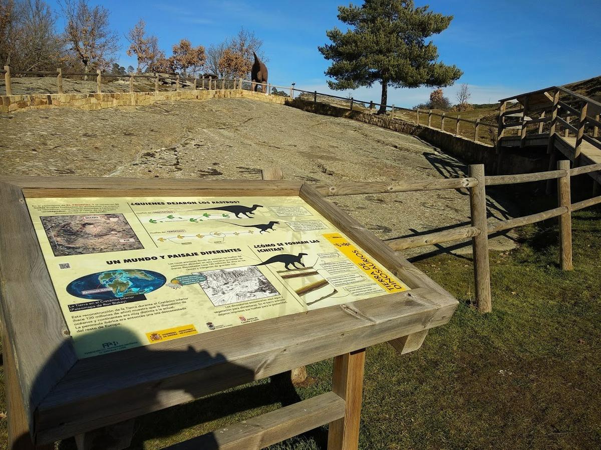 Tras pasar por Covaleda y Duruelo de la Sierra encontramos este pequeño pueblo burgalés con una sorpresa anunciada en un pequeño cartel: Huellas de dinosaurio. ¿Cómoooo? Allá que vamos. Efectivamente, sin necesidad de salir del pueblo encontramos un yacimiento de Icnitas con sus carteles explicativos. Totalmente abierta al público y con una estatua presidiéndola que no dejaba lugar a dudas. Sin ser tan espectacular como otros, es interesante y para niños fans de los dinosaurios como los nuestros, un aliciente más de recorrer la Sierra de la Demanda con niños.