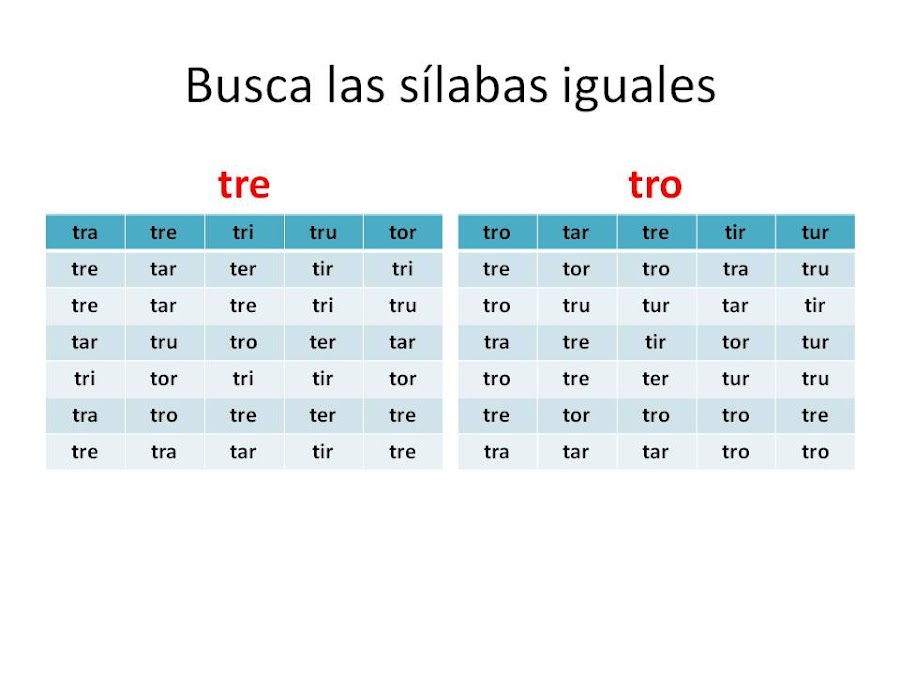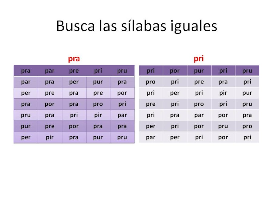 El ejercicio es simple, yo se las hago leer todas y que vaya tachando las que son iguales a la que se busca.
