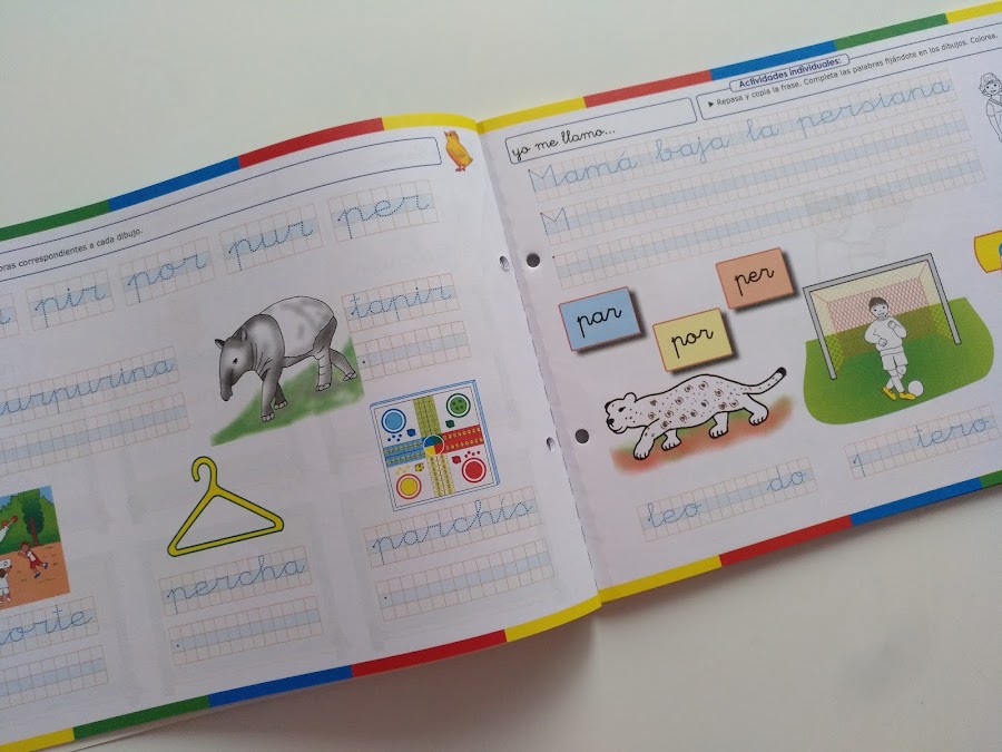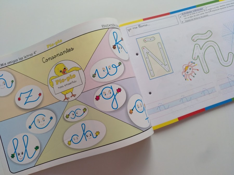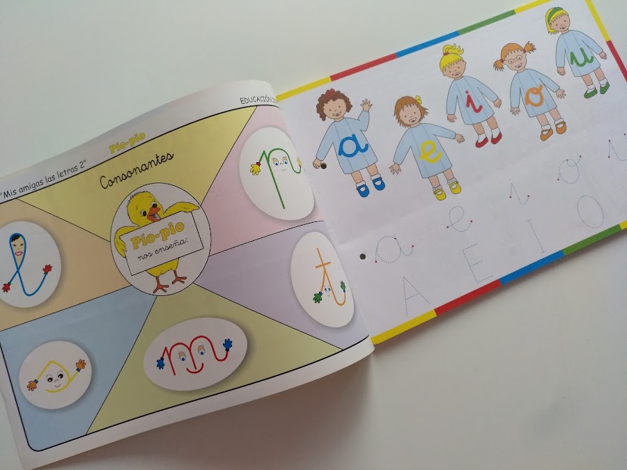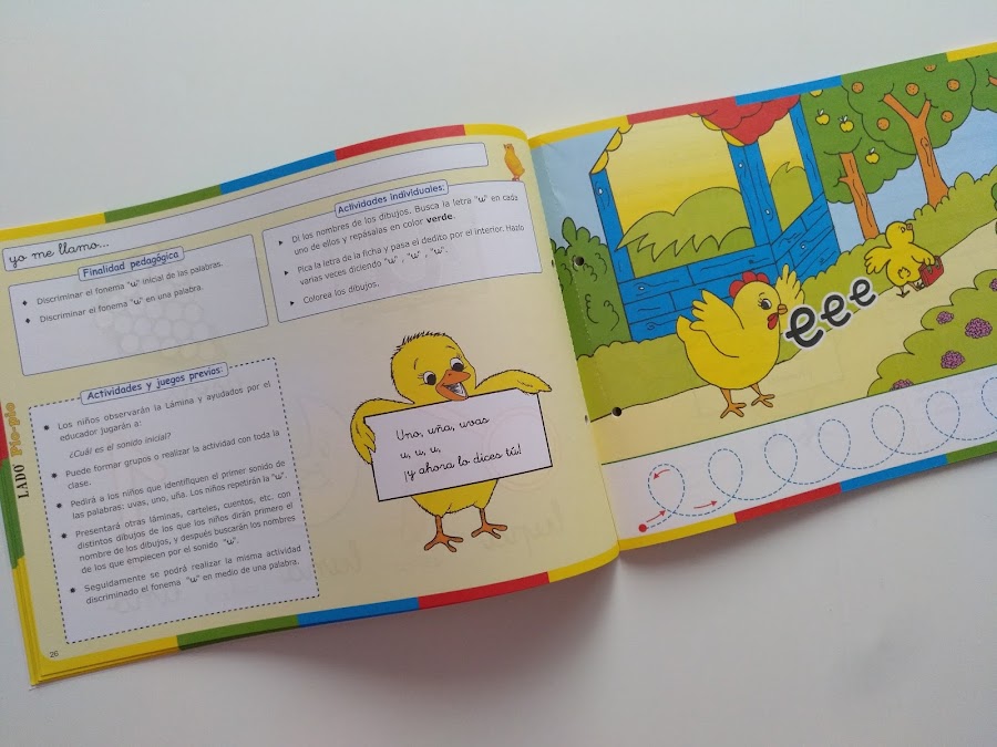 Todos los materiales que conforman el sistema de lectoescritura Pío Pío están repletos de divertidos dibujos infantiles, coloridos y llamativos, que captan el interés de los niños/as favoreciendo así su motivación hacia el aprendizaje de la lectoescritura y ofreciéndoles este proceso de forma atrayente y divertida. Por lo tanto, ofrecen un enfoque lúdico y no solo didáctico y eso me está encantando y sorprendiendo para bien al mismo tiempo.