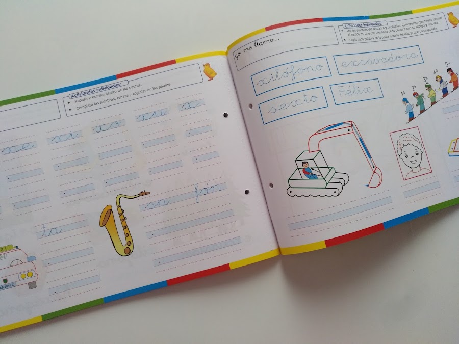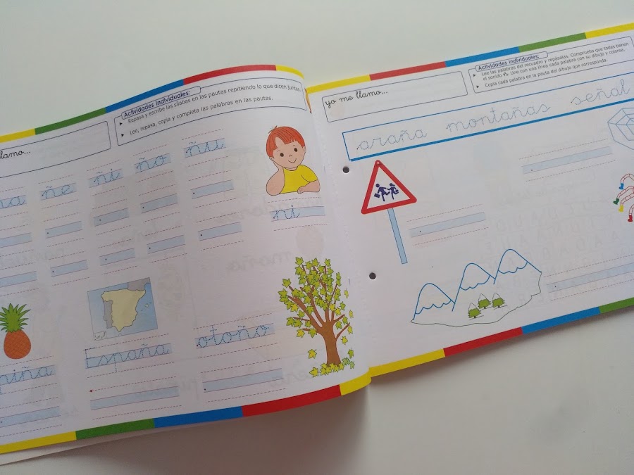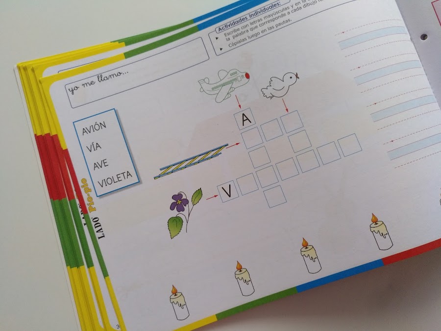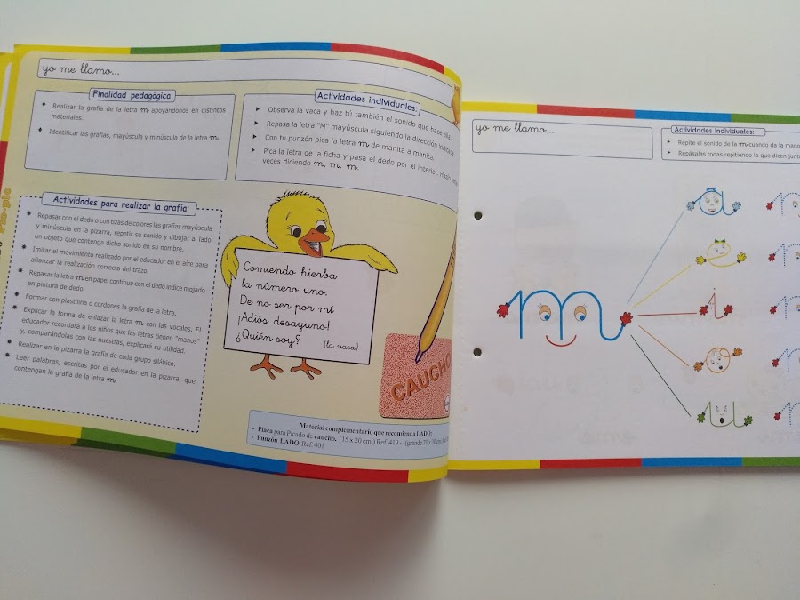 Es un sistema atrayente y motivador, en el que todo está muy cuidado, intentando en todo momento que los niñ@s disfruten del proceso. Es por ello por lo que todas las letras (como podéis ver en algunas imágenes) están personalizadas con caras y manos.