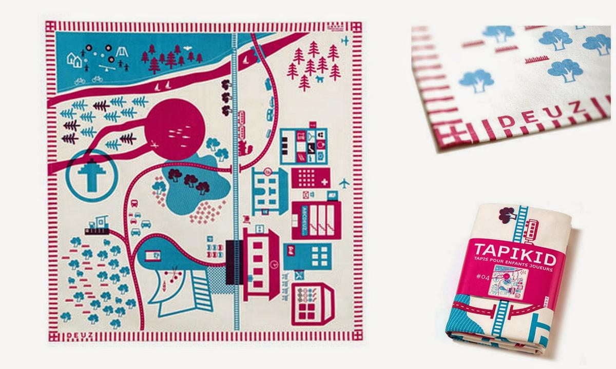 Enamorada estoy de las alfombra de juegos TAPIKIDS, de la marca francesa Deuz. Con unos diseños muy alegres y coloridos que conforman diferentes espacios, ideal como escenario de juegos. Están confeccionadas en 100% algodón orgánico certificado libre de tintes tóxicos, harán las delicias tanto de grandes como de los más peques.