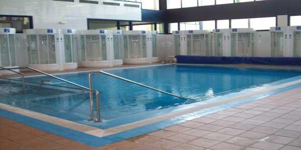 Y en un lateral están las duchas para acceder y alrededor de la piscina, las cabinas de hidromasaje. Saliendo de esta zona y justo enfrente, está el vaporium con ducha dentro. También te ofrecen agua refrescante de los manantiales de la zona, natural o con un pequeño toque de naranja o limón. Además, sacan para los más pequeños flotadores, manguitos, churros y otros elementos para que puedan disfrutar del baño.