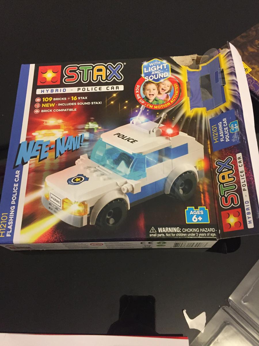 Con Stax han creado una torre luminosa que ahora utilizan como lámpara en su habitación cuando se van a dormir. Algunas de las cajas ya traen las fichas predeterminadas para hacer un determinado juguete (un coche de policía en el que además suena la sirena, un dinosaurio, un perrito…), pero después de hacerlos mezclaron todas las fichas de distintos juguetes y comenzaron a hacer sus propias invenciones.