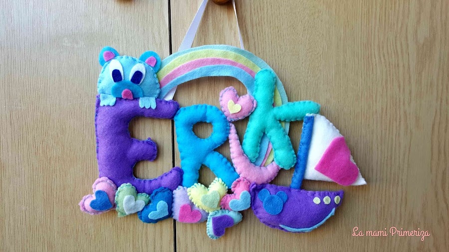 Como sabéis aquellas que me seguís por Facebook (AQUI) estoy a la espera de que me nazca en poco más de 5 meses un primito y un sobrino ¡Qué ilusión! y como yo soy un poquito inquieta me puse a hacerles nombres de fieltro para sus respectivas habitaciones, pues bien, algunas de vosotras me habéis sugerido que os haga alguno, que os han gustado los diseños y que por ello queréis pedirme uno para vuestros retoños, y yo encantada! y es que a cada nombre le pongo mucho cariño y entusiasmo, además es súper divertido poderlos personalizar a vuestro gusto, así que, además de seguir hablando de maternidad, de embarazo, y de mucho más, desde este momento el blog inaugura sección y podéis pedirme los nombres de fieltro para vuestros peques. Espero que os gusten mucho! Estad pendientes que iré haciendo varios más que tengo en mente. Mil gracias por vuestros mensajes, apoyo y por leerme cada día chicas. Podéis entrar en la nueva sección del blog pinchando AQUI o bien en el mismo blog en la pesta bajo la foto de portada donde pone "nombres de fieltro" o en la columna de la derecha donde pone "nombres de fieltro y más cucadas"