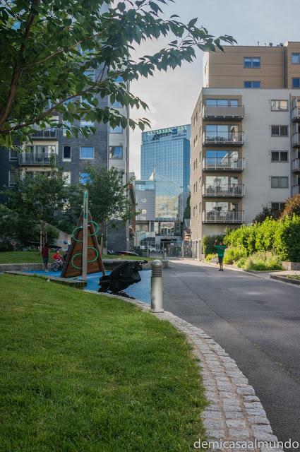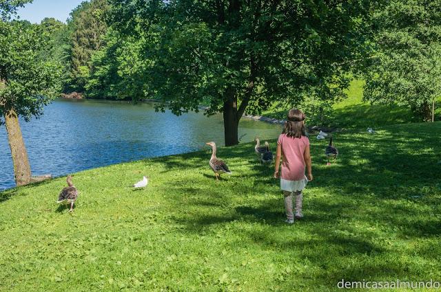 Tengo que decir que el año pasado en Roma, nos resultó casi imposible encontrar un parque o zona infantil allí por dónde íbamos. Y en cambio en Oslo, ¡es que no paramos de ver parques! Y todos con sus zonas verdes ajardinadas, que parecen campos de golf, ¡son magníficos!