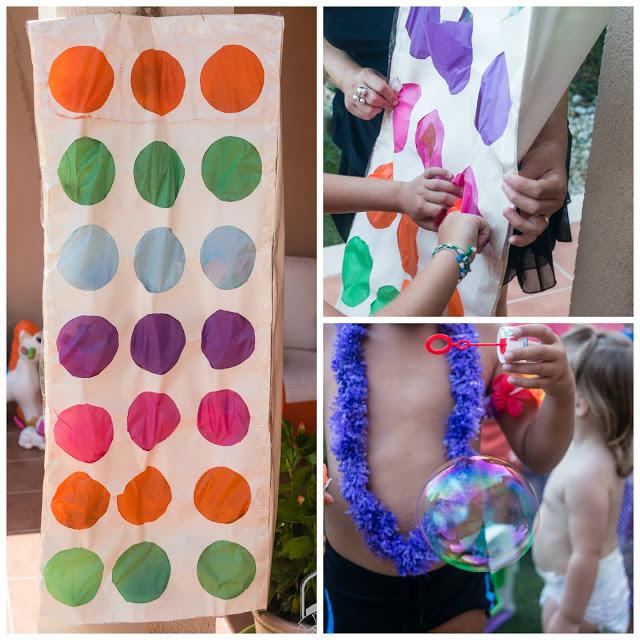 Después como guinda de la fiesta, preparamos una piñata casera que fue un exitazo. Saqué la idea de aquí gracias a Pinterest, y es genial, porque así los niños no se pelean por conseguir regalos. Por turnos escogen el agujerito que quieren romper y sacan lo que hay dentro.