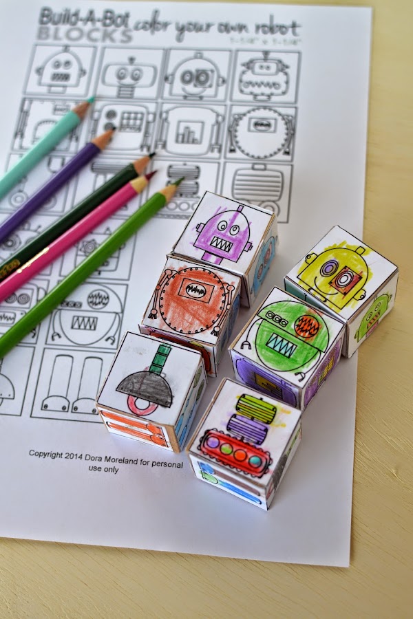 Rompecabezas en cubo de robots. Este imprimible trae varios cuadritos con partes de robots para colorear. En el DIY pegan esos cuadritos en cubo de madera, pero si no tienes puedes hacer los cubos con cartón y luego pegarles encima los dibujo ya coloreados.