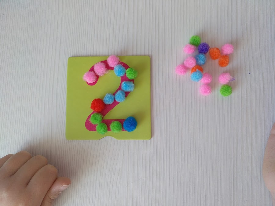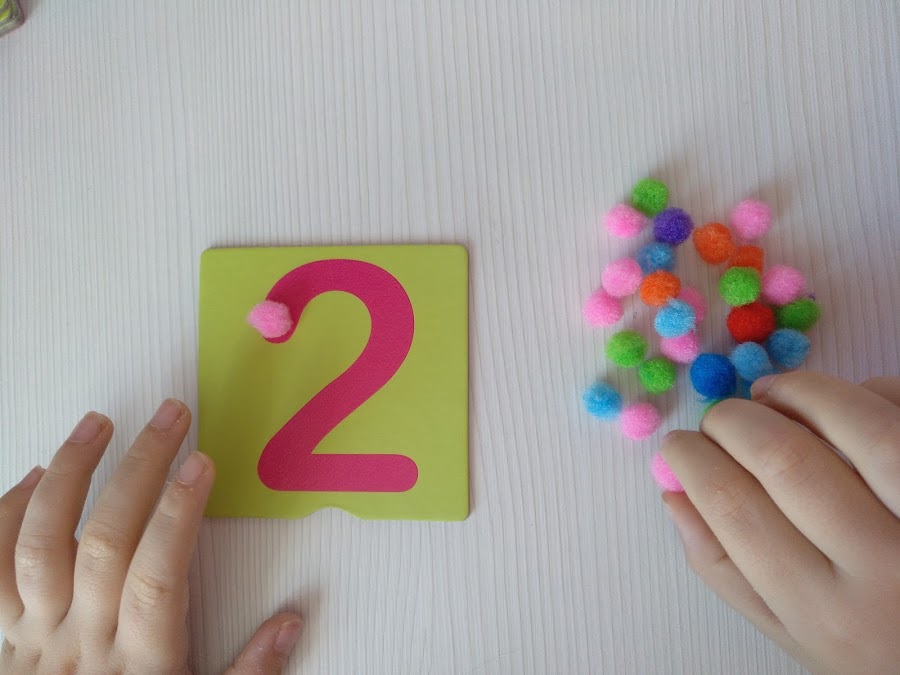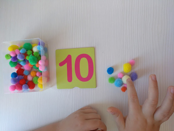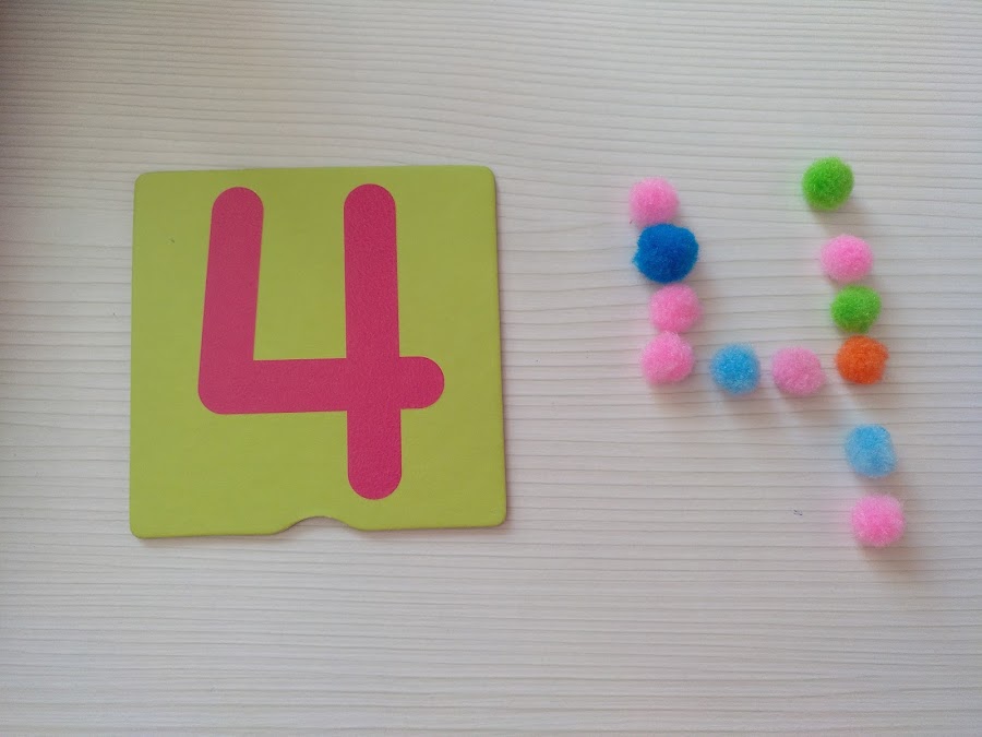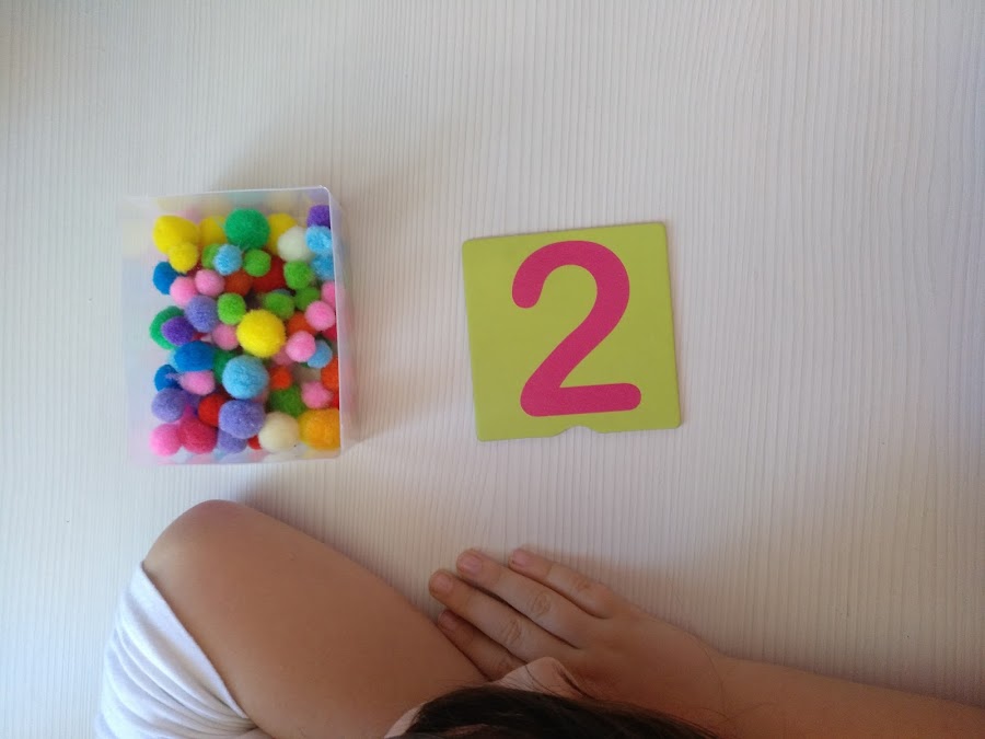 Una vez que los niños/as reconocen los números, llega el momento de aprender a contar y de trabajar la asociación número-cantidad. En este caso, podemos realizar actividades que además ayudan a afinar la motricidad. Para ello podemos utilizar pompones. Un material muy económico y fácil de conseguir. Proponemos a los niños/as relacionar los números con la cantidad de pompones correspondiente.