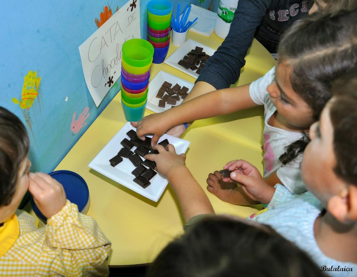 La segunda parte del taller consistió en una cata de diferentes tipos de chocolate: blanco, negro, con leche, con lacasitos, con galletas...
