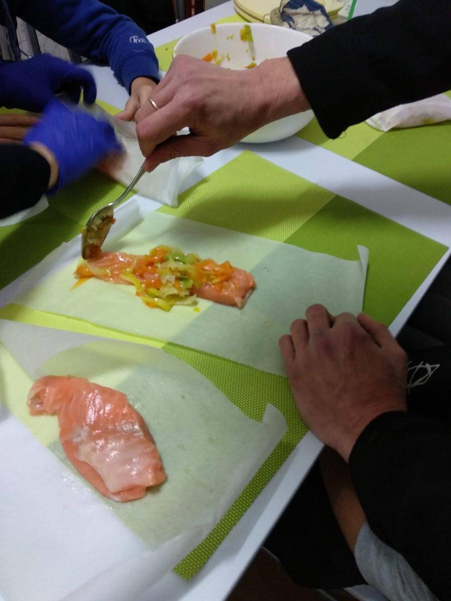 Hicimos los paquetitos del salmón y cocimos la pasta.