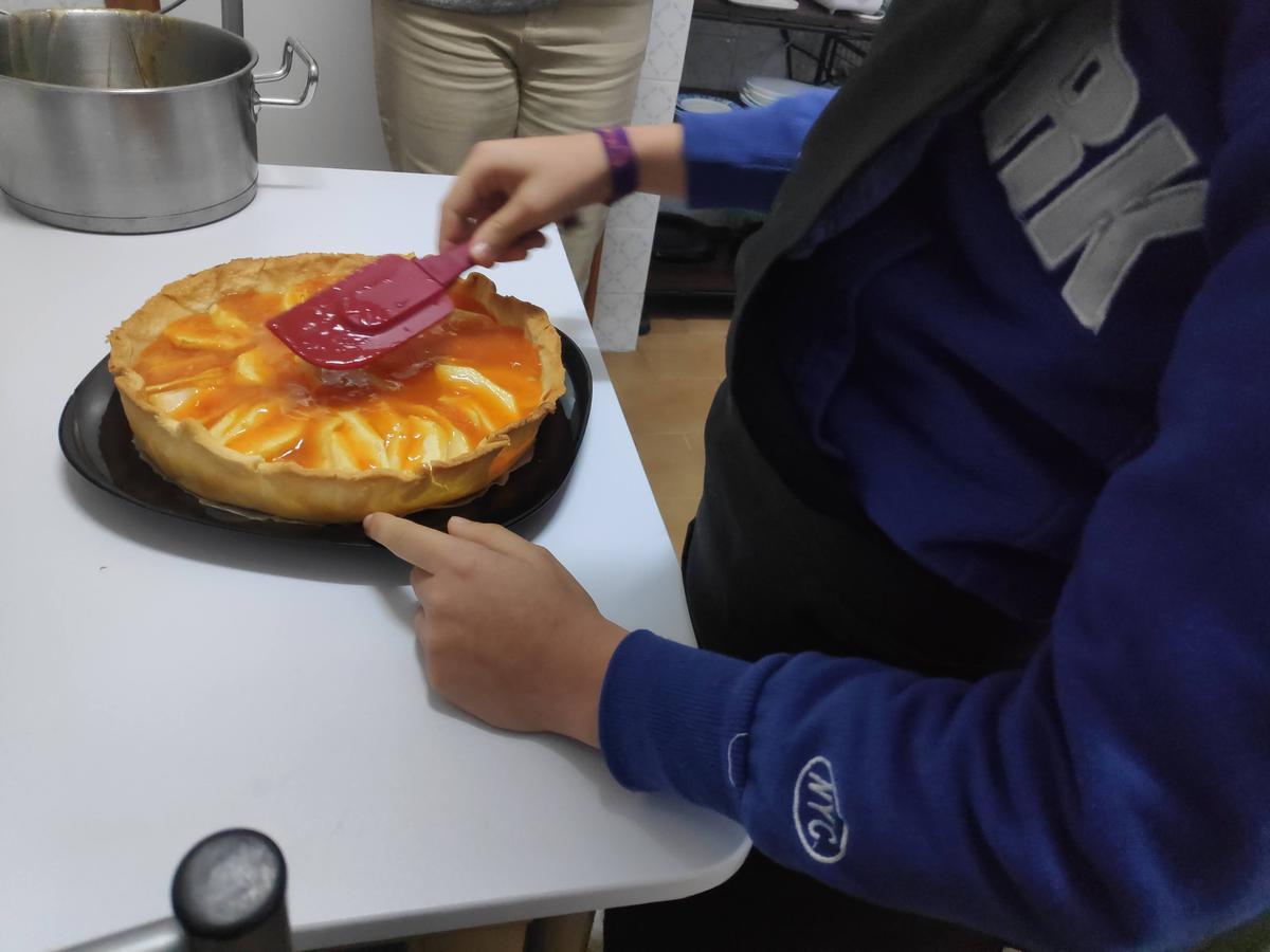 Así que primero empezamos por la crema pastelera de la tarta porque se tenía que enfriar un poco. Después metimos la masa quebrada en el horno.