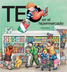 No son dos libros cogidos al azar, es que a Alicia le encanta ir a esos dos sitios, a la feria en verano y al supermercado cuando vamos, así que "bienvenidos al universo de Teo", son libros que me apetecía mucho que conociera Alicia, no se si los ve en el colegio, pero son un clásico, no pasan de moda. y son libros que enseñan mucho vocabulario con una cantidad de dibujos donde explicar muchas cosas diferentes. Si le gustan iremos cogiendo mas de Teo.
