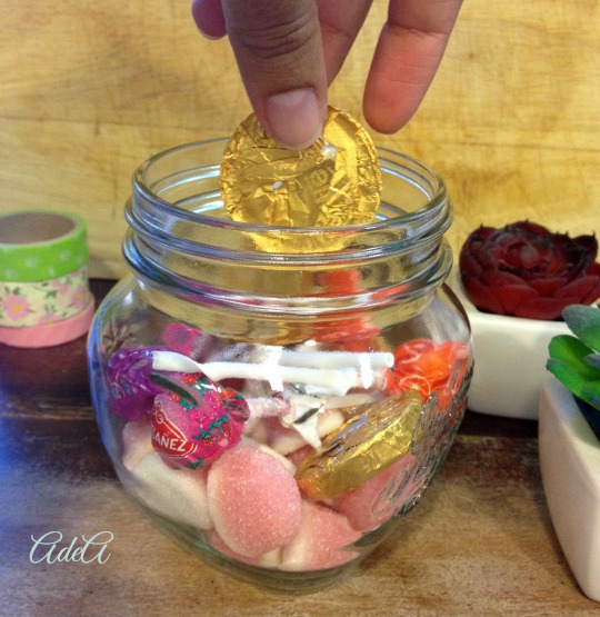 Y ya está, ya tenemos nuestro tarro de chuches personalizado, fácil, barato, hecho a mano y con la ayuda de los peques. ¡Éxito asegurado!