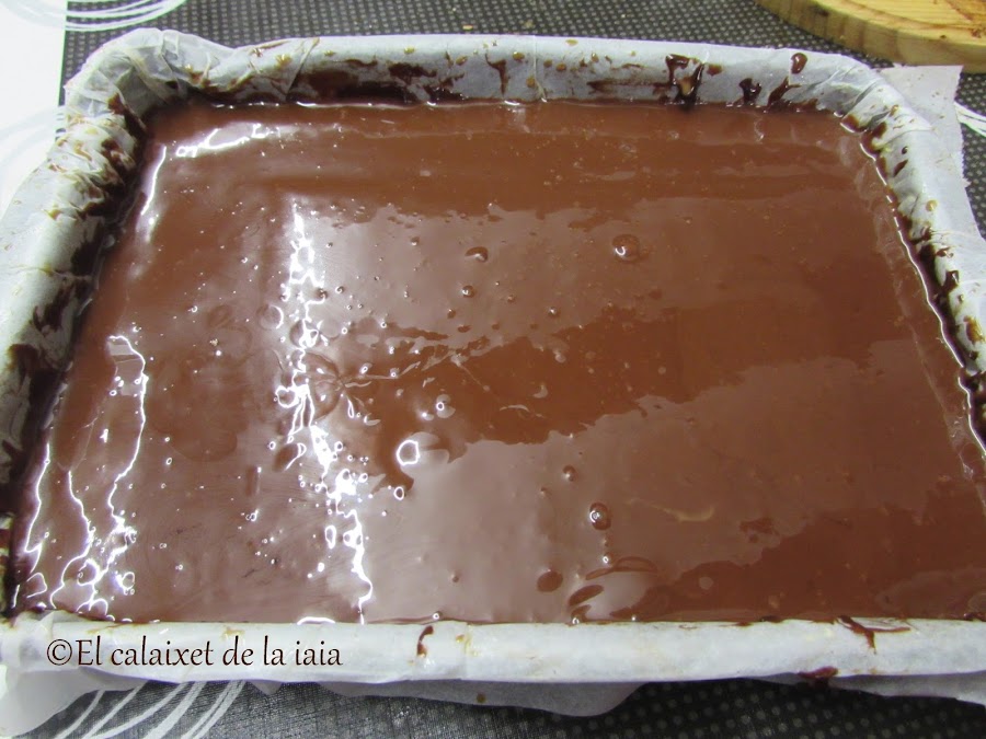 Terminaremos con una capa de ganaché de chocolate y llevaremos al frigo durante unas cuatro horas para que se solidifique el chocolate lo justo.