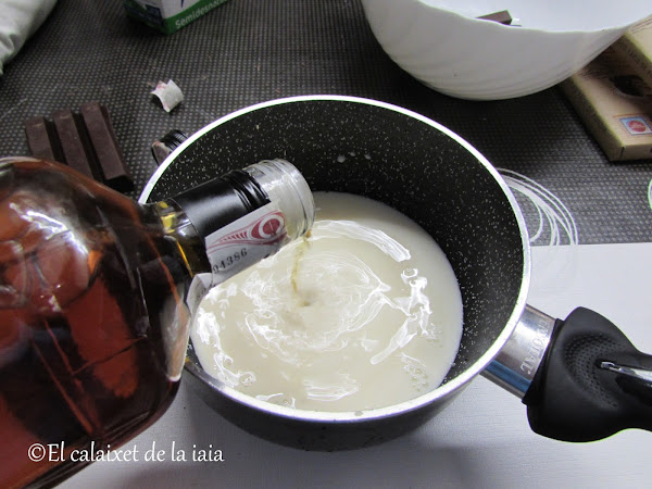 lo removemos y pondremos al fuego hasta que de un hervor para que se evapore el alcohol, y lo dejaremos enfriar. Si no la van a comer niños, no importa que el café no sea descafeinado y os podéis saltar el paso de evaporar el alcohol.