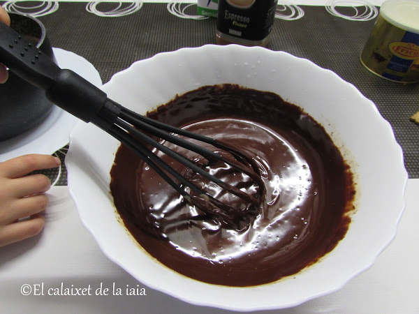 Este año la tarta es más que especial, porque otro años me ha ayudado a prepararla mi nieta mayor, pero en ésta ocasión, ya son la mayor y la pequeña quienes han colaborada en la tarta de cumple de su papi, bueno, siendo sincera, soy yo la que ha colaborado porque han sido ellas quines han hecho todo a excepción de calentar la leche para evaporar el alcohol del wisky y montar la nata y la trufa. La iaia hoy ha sido la pinche y ellas, las cocineras ;)