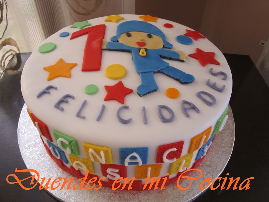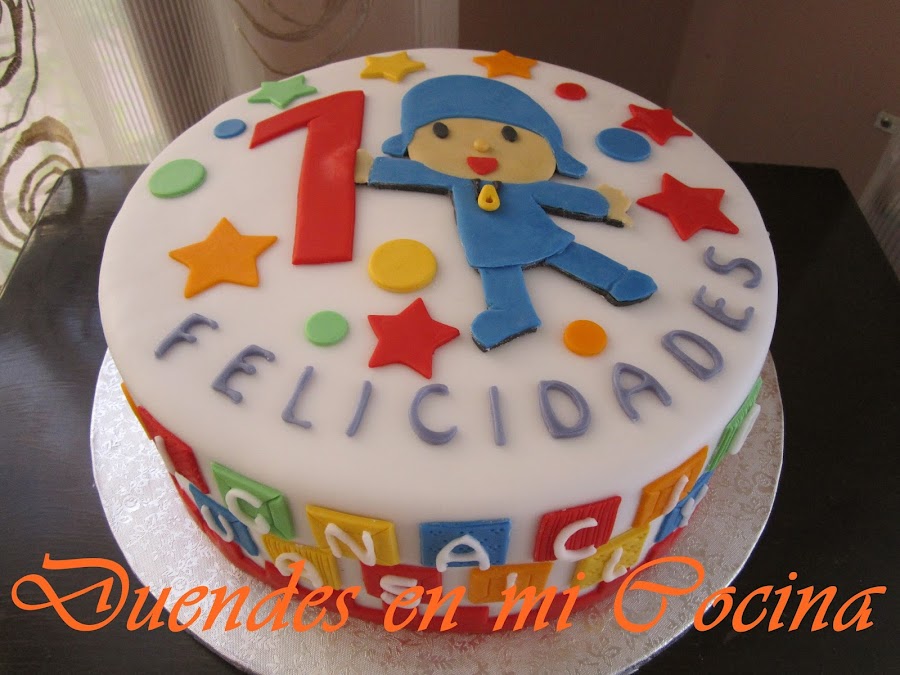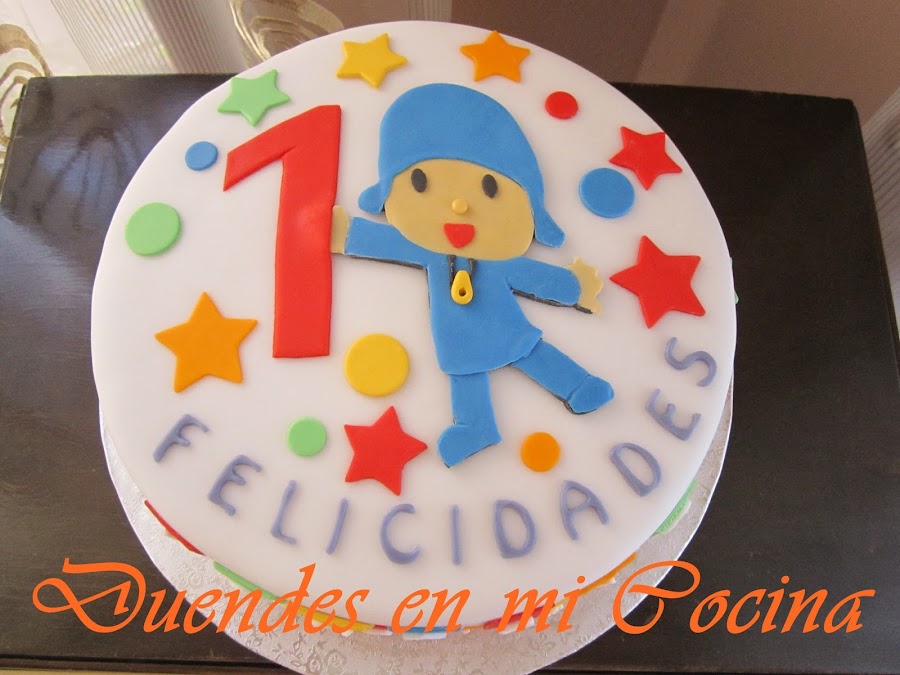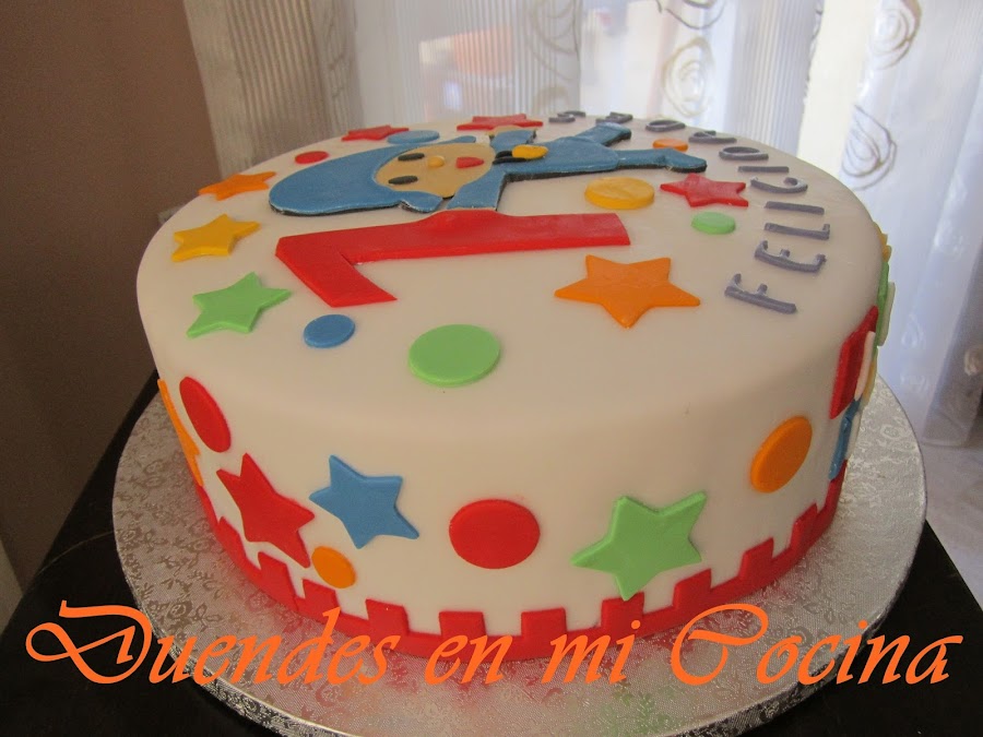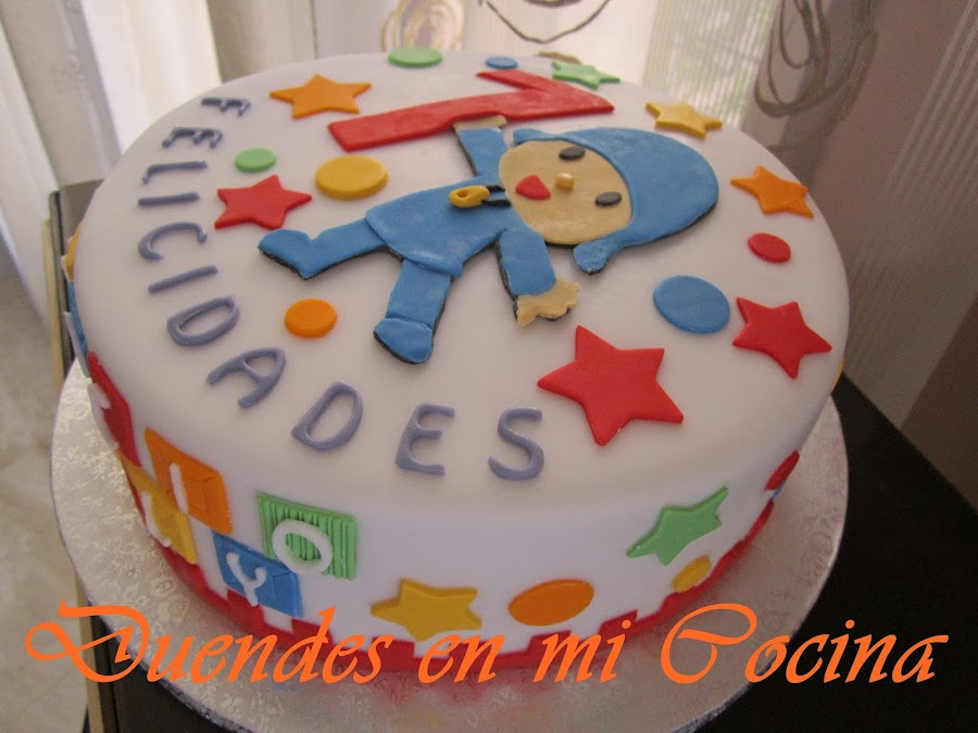 Yyyyyyyyyy otra de Poco-Yo. Decoraciones simpáticas, donde las haya, las de Poco-Yo, con bizcocho de vainilla y relleno de Ganache de chocolate y crema de naranja, espectacular, el bizcocho, por supuesto, calado con almíbar de naranja.