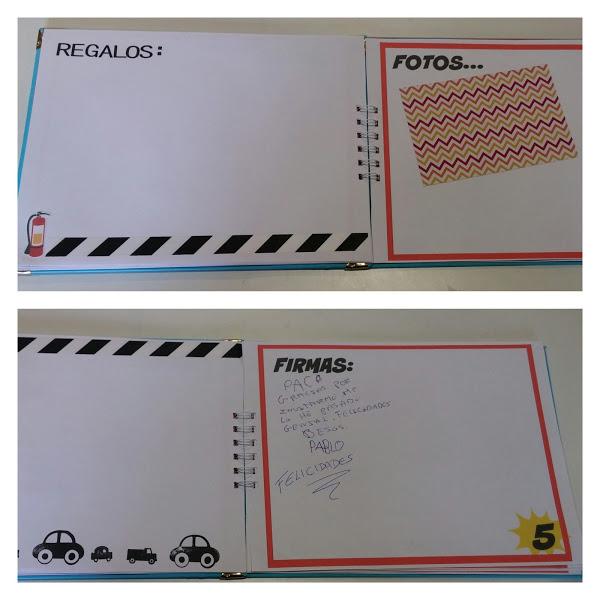 -Las paginas las confeccioné con cartulinas de tamaño A4, utilice sellos de coches para dar más harmonia