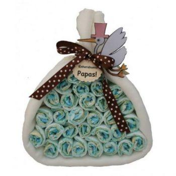 Una pequeña tarta de aspecto muy cuco y elegante que unido a su gran relación calidad – precio la hace uno de los regalos más enviados, con los que participar de esa alegría del momento tan especial como un nacimiento. Ofrecemos como opciones elegir entre pañales dodot y chelino, dos de las marcas líderes del mercado en adaptabilidad, comodidad para el pequeño y absorción frente a escapes de pipi.En resumen se trata de una preciosa tarta de pañales en forma de pirámide compuesta de 30 pañales envuelta en una manta. Los pañales son algo siempre útil y además se necesitan muchos a lo largo de la vida del bebé por lo que una tarta de pañales además de un regalo bonito y vistoso es un regalo muy práctico y un acierto seguro.