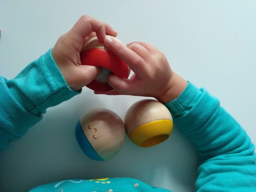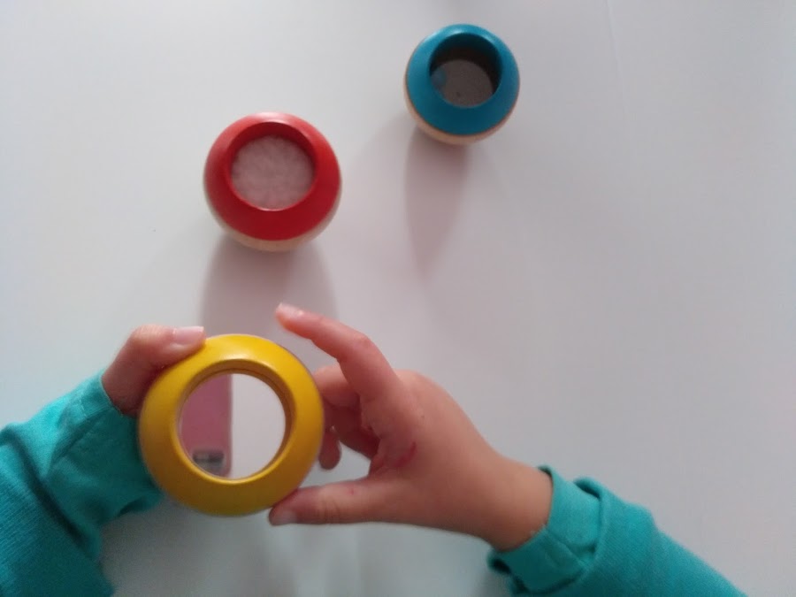 El de color amarillo ofrece una característica visual. Tiene un espejo en el que los peques pueden verse reflejados. Y no sé a los vuestros, pero a los mios les encantan los espejos. No ha podido tener más éxito este tentetieso.