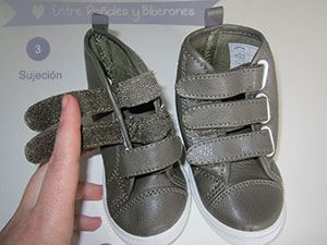 El tema de la sujeción es otro tema primordial... yo recomendaría sobremanera cordones frente a velcros .... un doble nudo suele ser suficiente para que los peques no consigan "zafarse" del calzado en cuestión !!