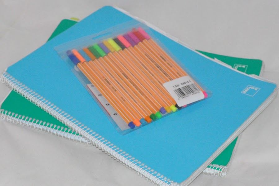 Otro "truquito" cuando compramos los libros de texto suelen regalarnos algo de material entonces nosotros se lo vamos guardando para cuando tengan que renovarlo.