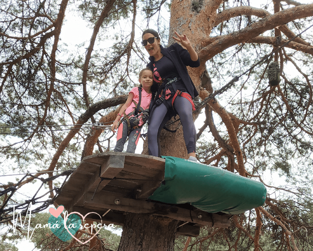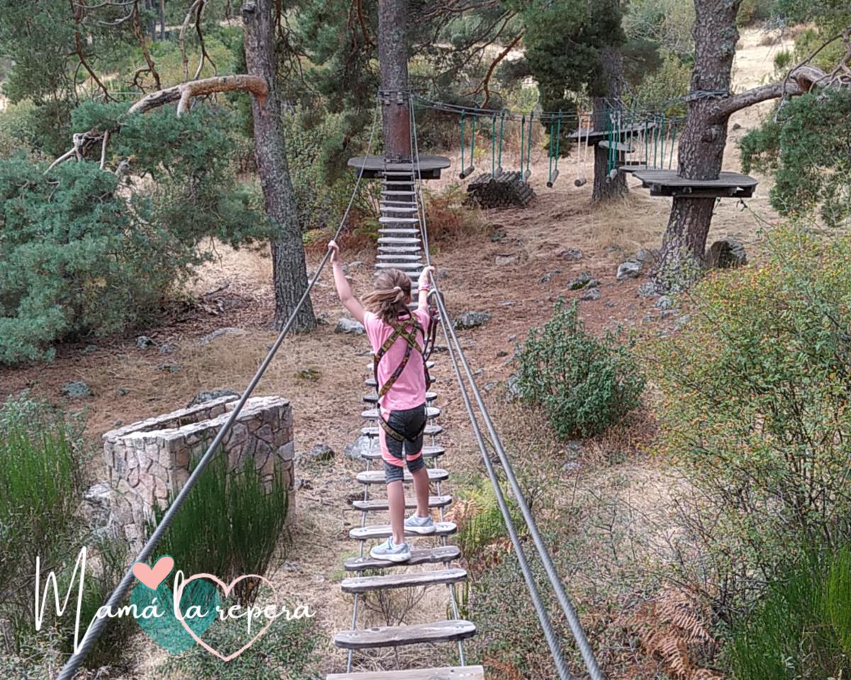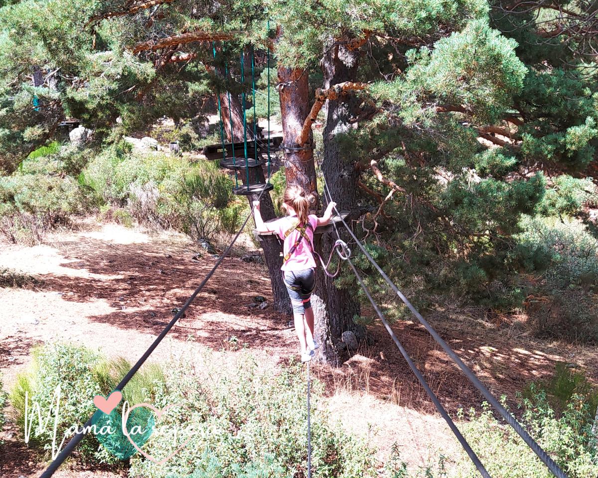 En el circuito hay varios puentes móviles para cruzar entre los árboles. Es un juego que no requiere de mucho esfuerzo pero si concentración. Una cosita que se me ha pasado deciros es que sería conveniente llevar guantes. A nosotras esta vez se nos olvidaron en casa y te pasas dos horas sujetándote a los cables, así que sería un complemento bastante recomendable.