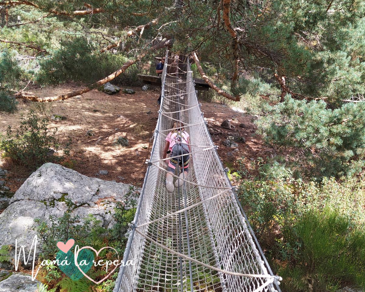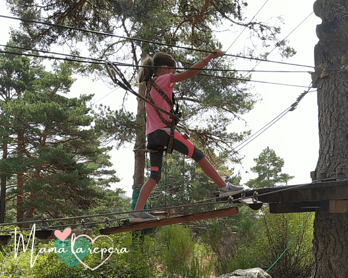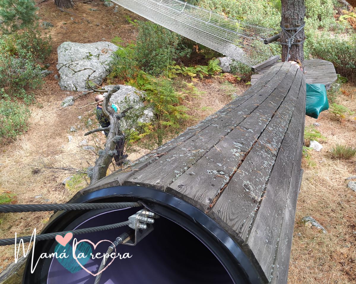 En el circuito hay varios puentes móviles para cruzar entre los árboles. Es un juego que no requiere de mucho esfuerzo pero si concentración. Una cosita que se me ha pasado deciros es que sería conveniente llevar guantes. A nosotras esta vez se nos olvidaron en casa y te pasas dos horas sujetándote a los cables, así que sería un complemento bastante recomendable.