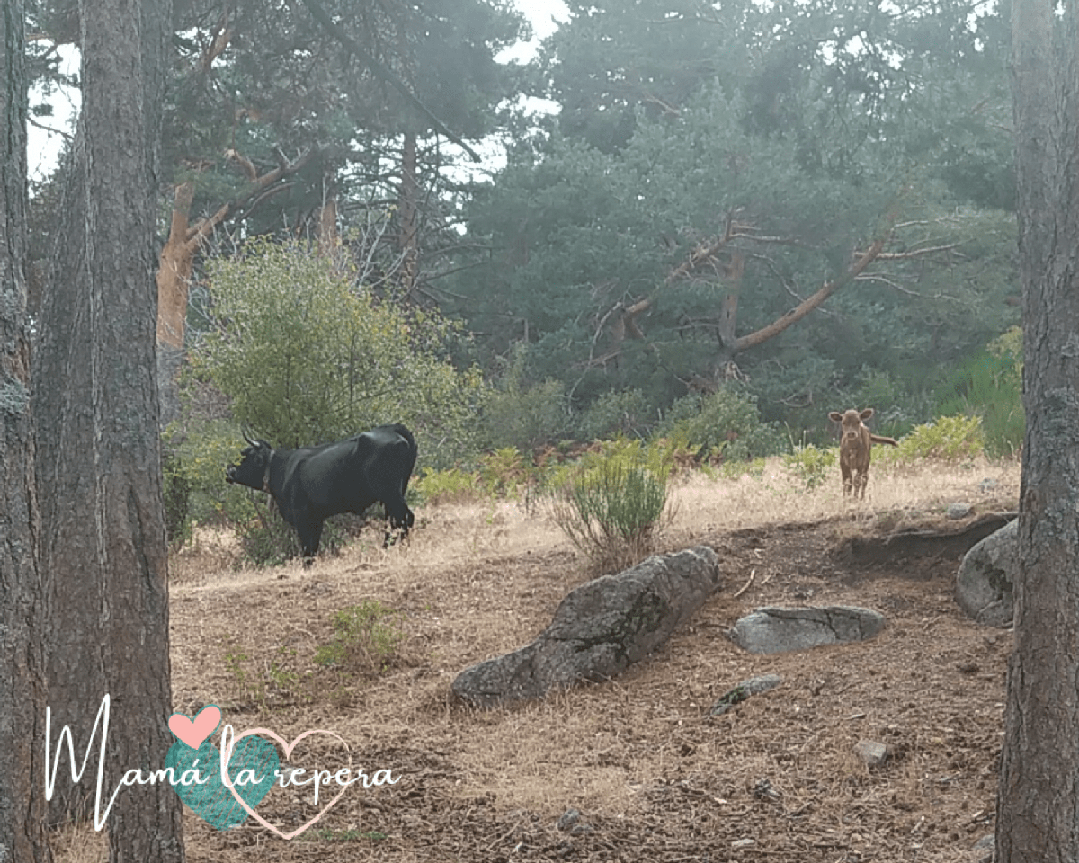A unos 50 metro de las instalaciones aproximadamente, hay unos merenderos donde se puede hacer un pícnic tranquilamente. Si el tiempo lo permite desde luego es la mejor opción para que los niños puedan continuar jugando en el bosque.Además no estaréis solos, ya que por esta zona hay muchas vacas pastando en libertad que si tenéis suerte, podréis verlas de cerca, tan, tan cerca, que hasta se arriman a saludar y a cotillear las mesas.
