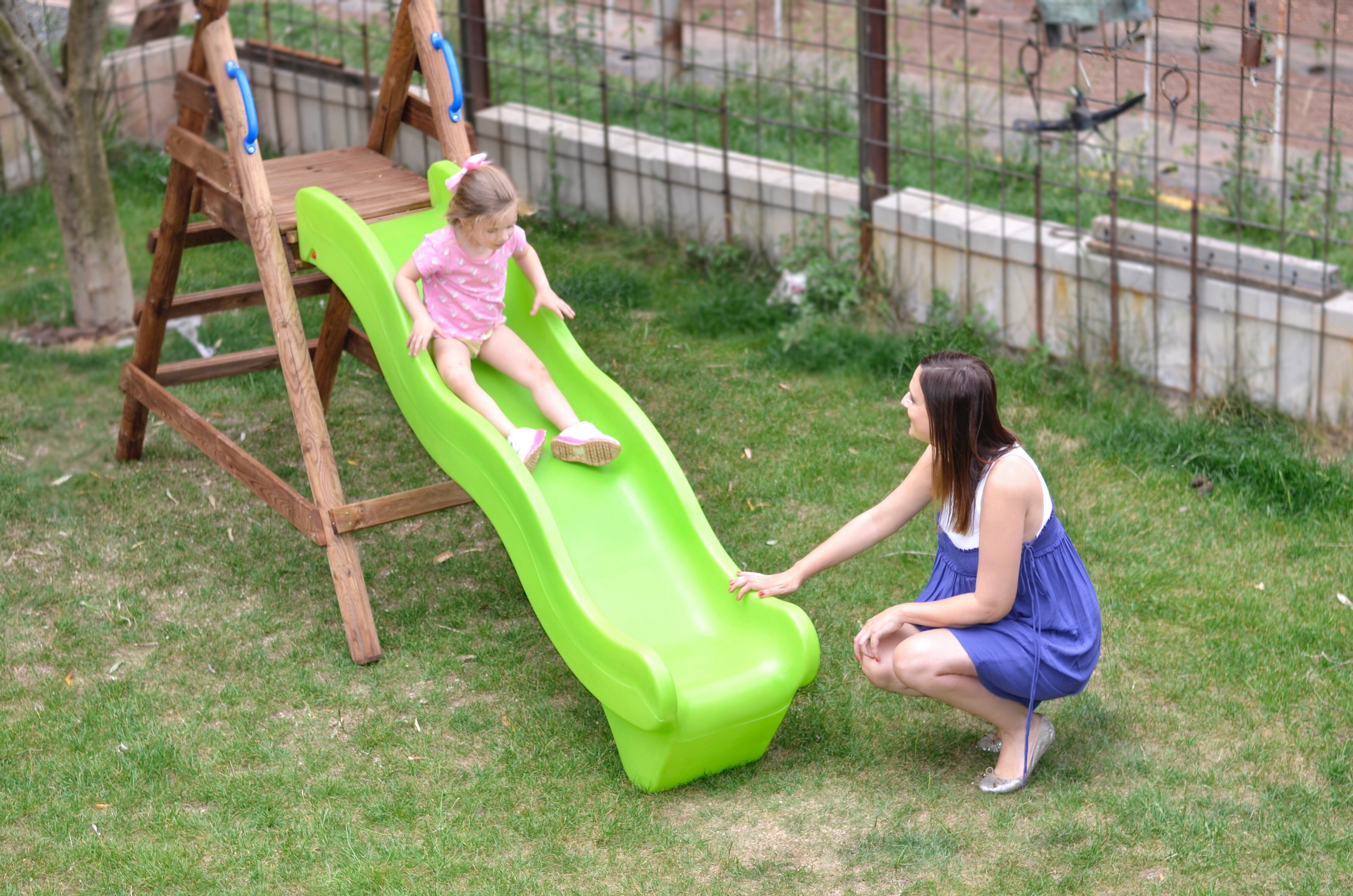 Entre todos lo que venden en Eureka Kids me decante por este porque me pareció chulisimo con la estructura de madera y porque aguanta hasta 45 Kilos de peso, quería que fuera un producto que les sirva años y años prefiero gastarme al rededor de 200 en un tobogán para toda la vida, que la mitad en uno mas endeble que tenga que retirar en un par de años.