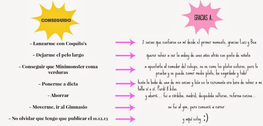 Os pongo en antecedentes, si recordáis mi entrada del Today 31.1.13 era sobre los propósitos que nos íbamos a marcar para este año, y justo hoy, 11.12.13 teníamos que publicar aquellos conseguidos y los que no.