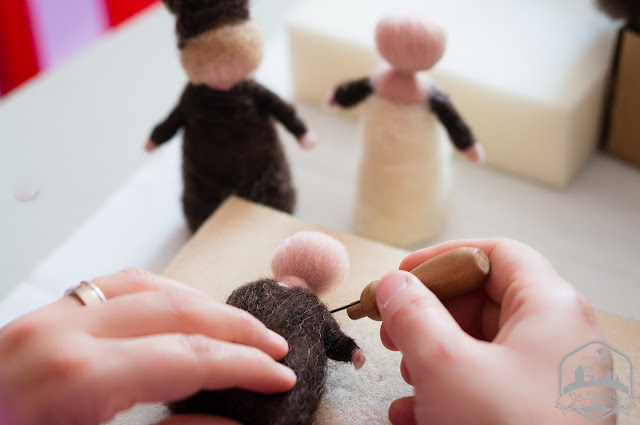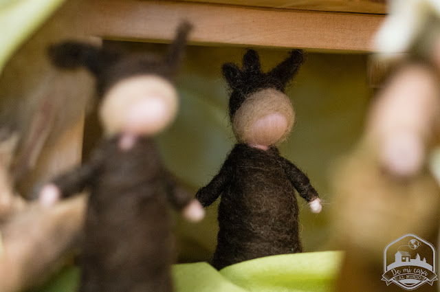 Los niños raíz que tenemos en nuestra mesa de estación los he elaborado con uno de los kits de lana para afieltrado en tonos naturales de LoraLora y he seguido la misma técnica que te expliqué cuando confeccioné a Madre Escarcha.
