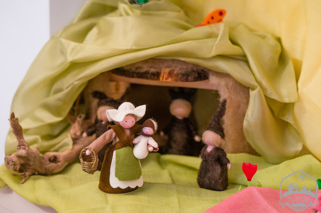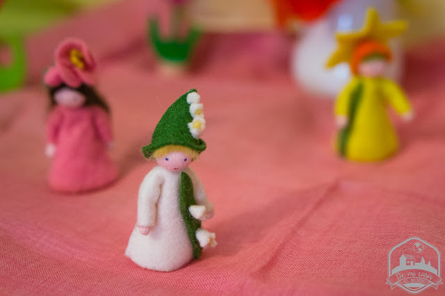 Podemos contarles entonces la historia de cómo la Madre Tierra los despierta y les pone a trabajar. Durante semanas trabajan en teñir y coser su ropa nueva para estar listos en cuanto llegue la primavera y transformarse entonces en hermosos niños flor.