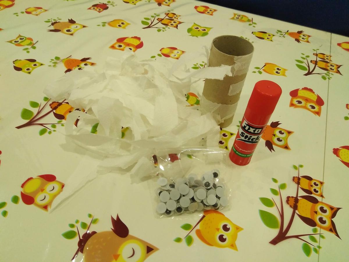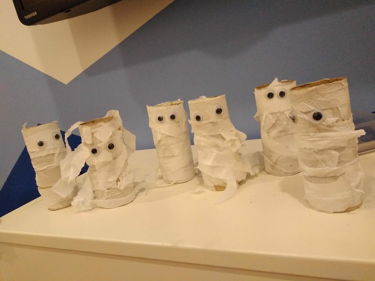 Para las momias solo necesitáis rollos de papel higiénico vacíos, y tiras de papel de cocina.