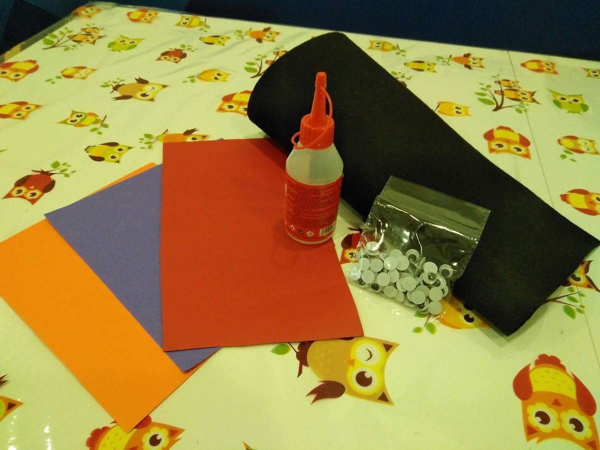 Con pegamento de barra, id pegando las tiras, cuanto “peor” las peguen los peques mejor. Una vez tengáis las tiras de papel pegadas, pegad los ojos móviles.