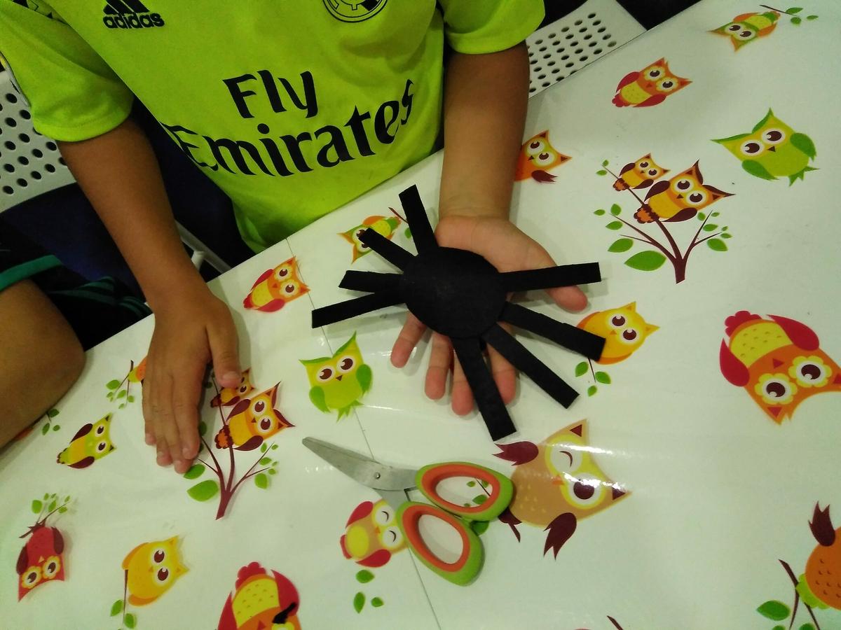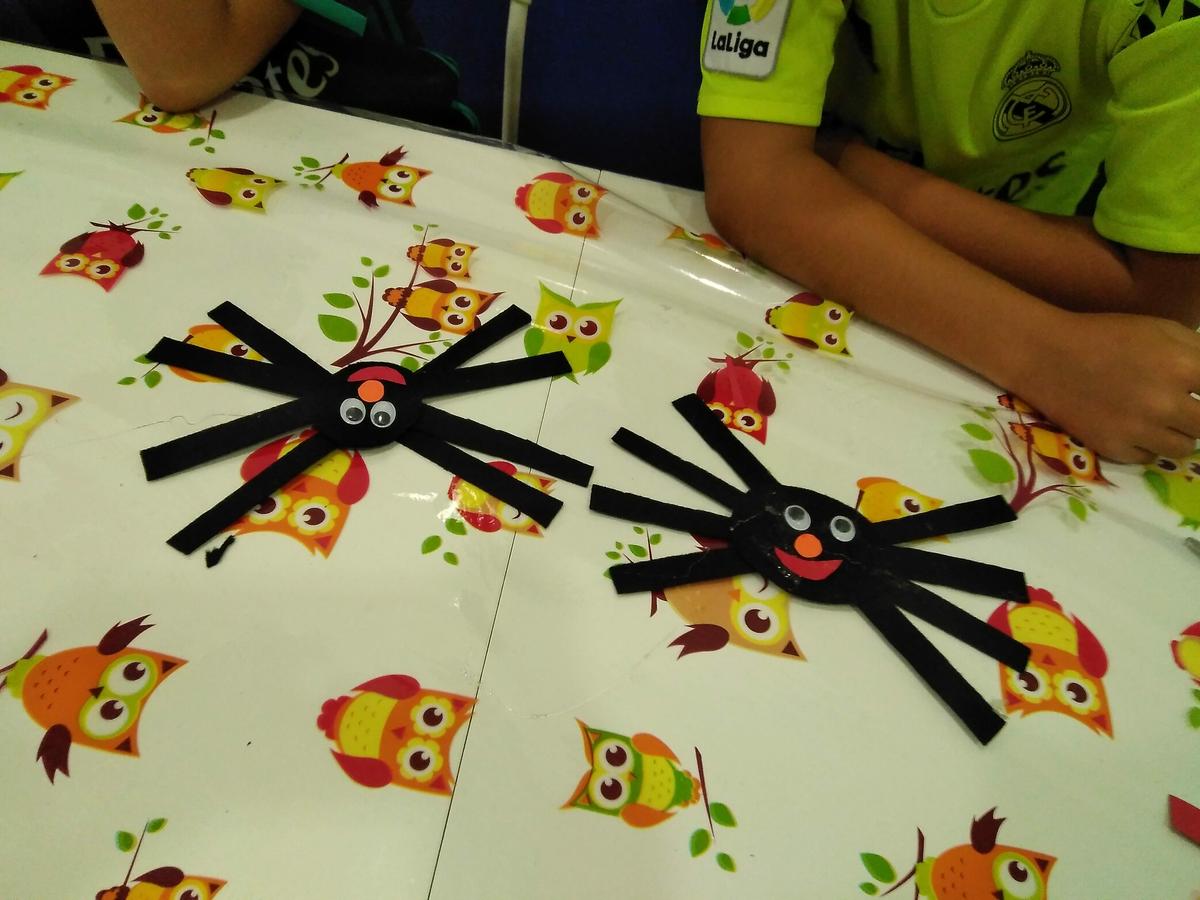 Mi chic@s quisieron añadir boca y nariz a sus arañas. Para esto tan solo necesitáis un poco de cartulina de colores y listo