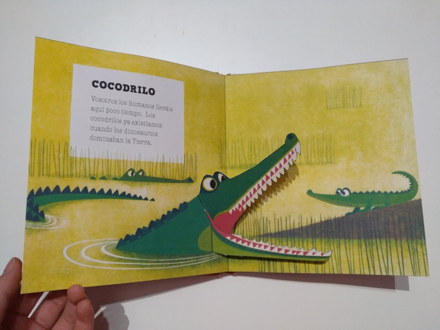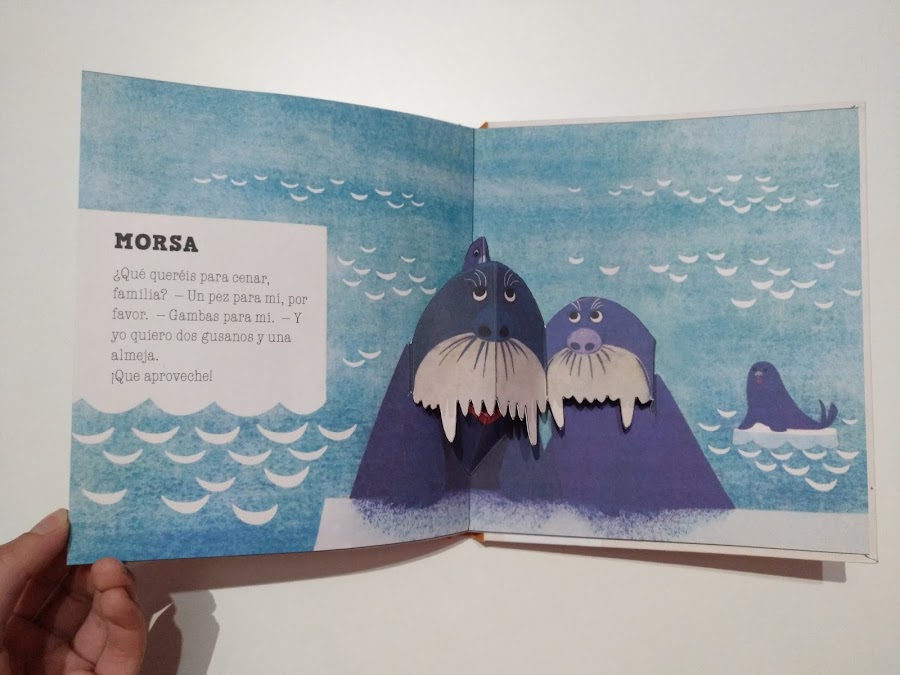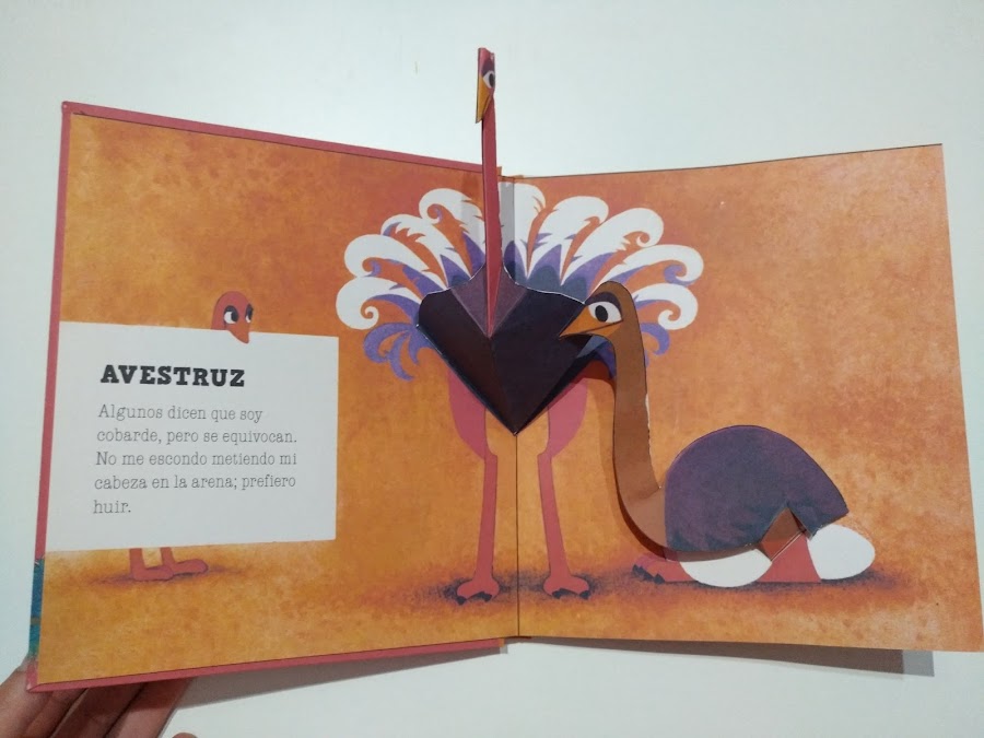 Es de tapa dura de cartón. En cada doble página nos encontraremos con un pop-up con un simpático animal y un pequeño texto que nos habla de alguna característica o curiosidad sobre el mismo. Contiene cuatro desplegables en total. Los personajes cobran vida mediante la animación con el paso de las páginas.