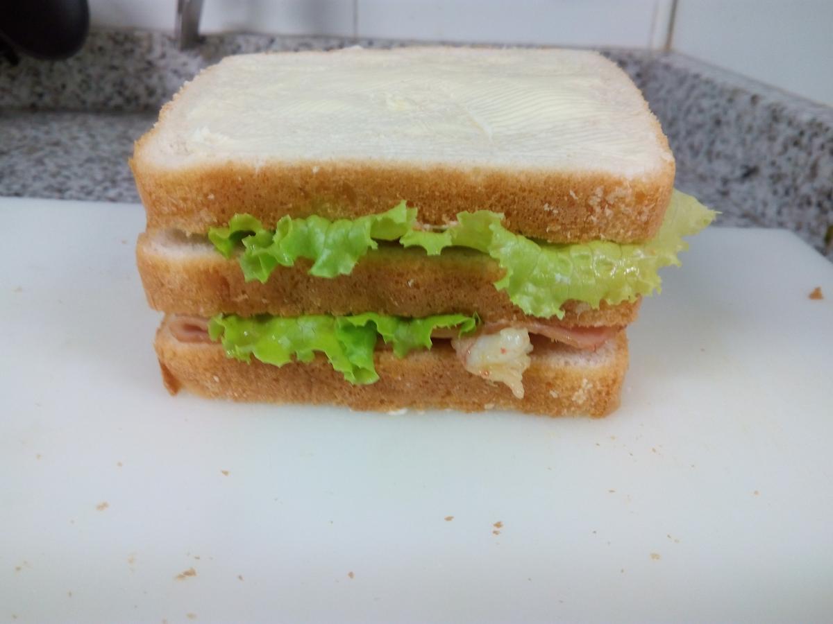 1.Primera capa: mayonesa, lechuga y tomate a ruedas.