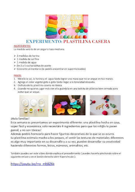 Y para terminar os proponemos un experimento muy sensorial, hacer plastilina casera. Aquí tenéis todas las instrucciones.
