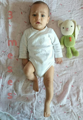 Uno de los inconvenientes de la trimaternidad es la limitación de tiempo a la que te ves sometida. Vamos, que no me da la vida, hablando claro. Desde que me levanto hasta que me acuesto no paro, y cuando digo que no paro es que no paro, porque incluso sentada en el sofá estoy dando teta, entreteniendo al chiquitín, leyendo un cuento o montando alguna Pin y Pon. Y esa limitación de tiempo se ve reflejada en cosas como que, cuando ya mi bebé ha cumplido los cuatro meses, aún no haya contado sus maravillosos tres meses.