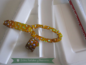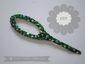 Finalmente, afiné un poco el llamémoslo "mango del artilugio" cortándolo con unas tijeras por los laterales, así resultará más fácil introducirlo en el pelo... Ahí va el resultado, decorado de nuevo con otro washi tape...