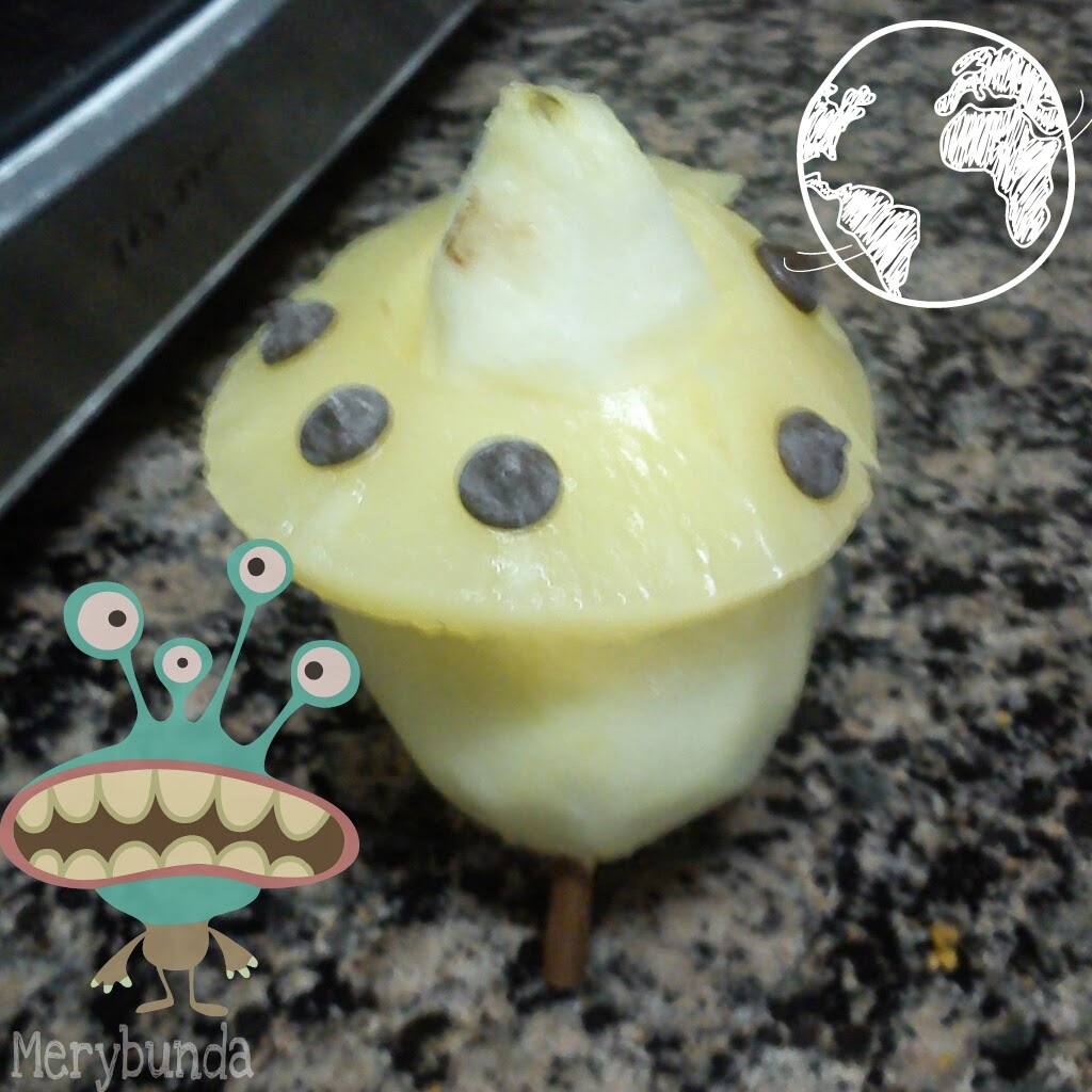 Bien pues ahora estamos en fase ¡fruta no! Y es que yo les suelo poner a almorzar al cole fruta todos los días y a merendar fruta, y se conoce que los pobres están ya hartos. Ya he probado a alternar almuerzos, ahora lleva tres días fruta, otro frutos secos, o queso o pepino...y los viernes como premio de fin de semana galletas o algún capricho. Pero aún así la fruta le sigue pareciendo un rollo, así que le dedicamos lo que tardamos en tomar el desayuno a buscarle forma a las frutas y convertirlas en algo divertido.