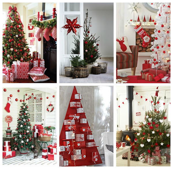Podemos decantarnos por un árbol más tradicional en verde ya sea natural o artificial, árboles blancos llenos de bolas rojas, o incluso árboles rojos hechos con un palet reciclado.