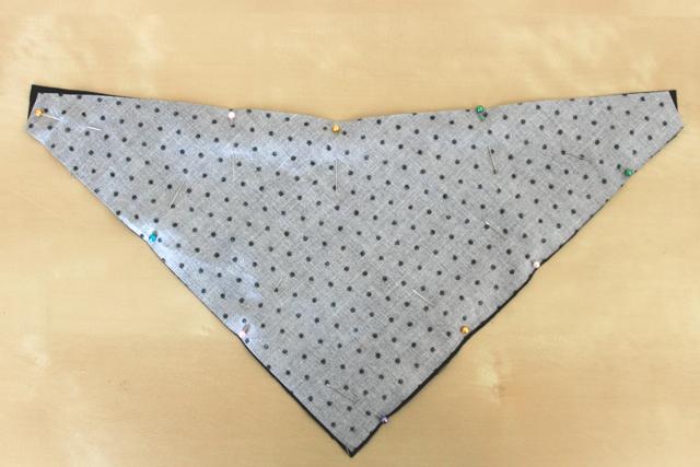 Cortar las telas por la mitad, quedándonos 4 triángulos