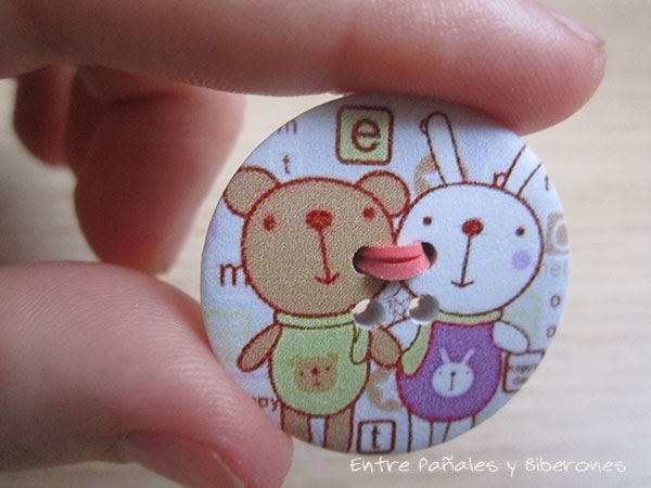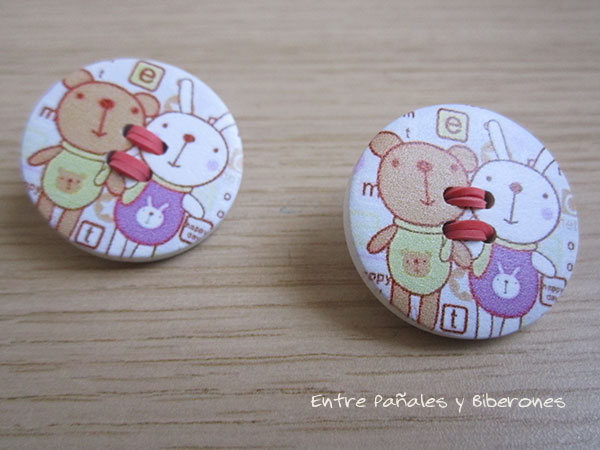 En este caso los botones son "bastante grandes y decorados de por si" así que decidí dejarlos tal cual, aunque podrían adornarse un poco más con algún lazo o cinta...