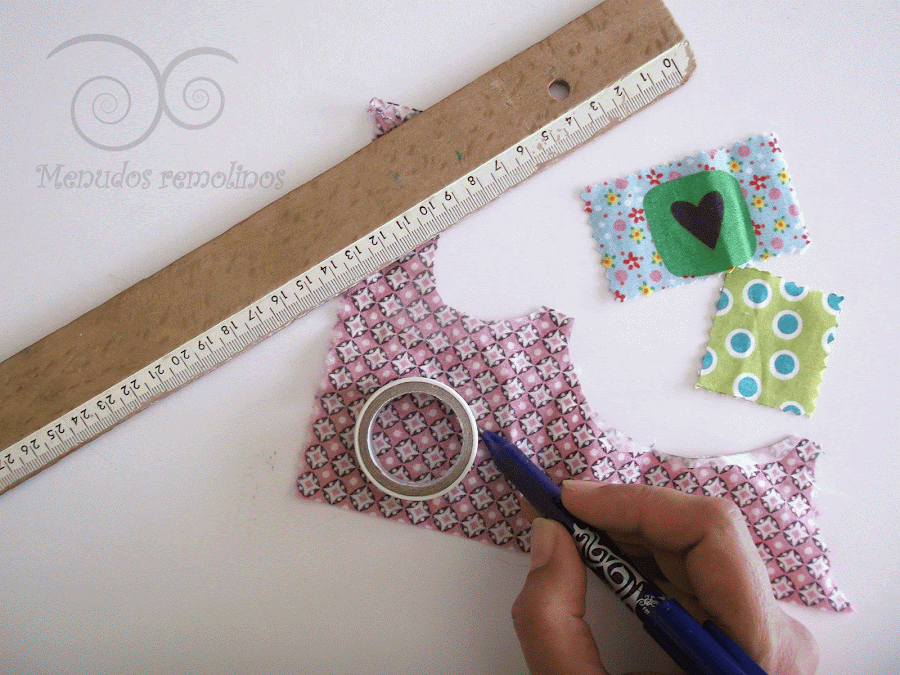 Para realizar formas como los círculos, van muy bien los rotuladores Pilot friXion Ball, que marcan la tela y pueden borrarse pasando la plancha por encima